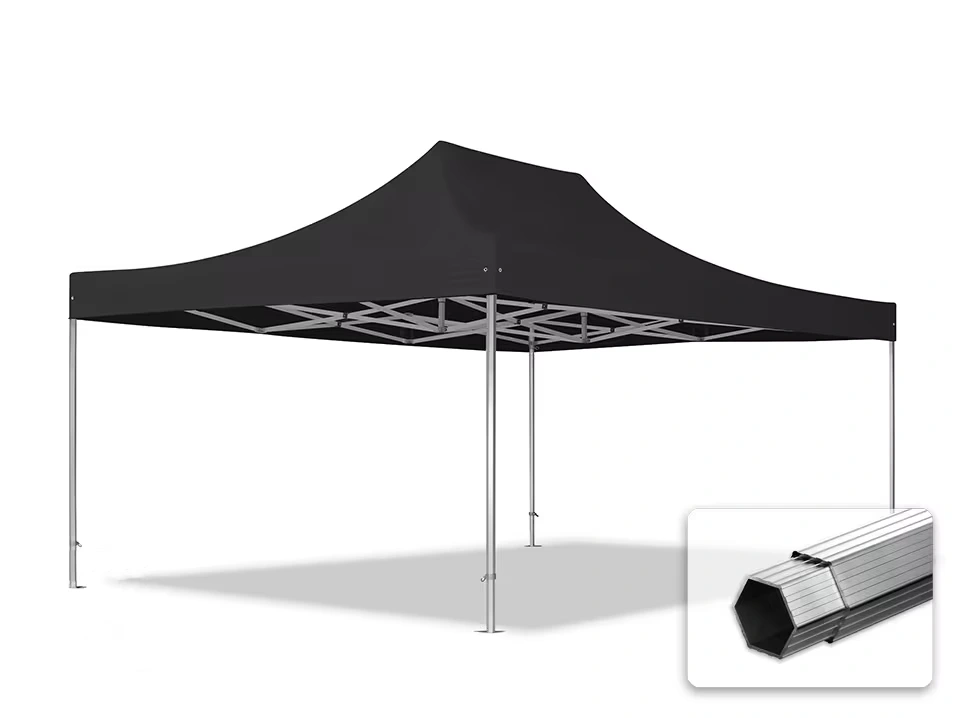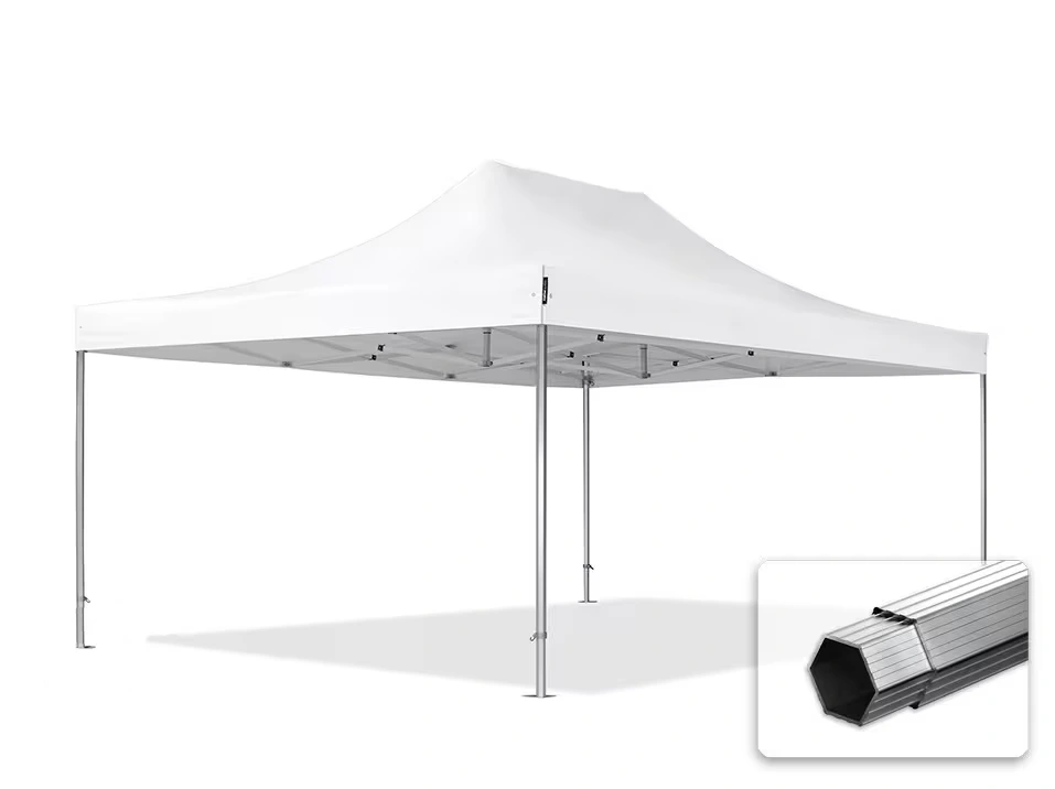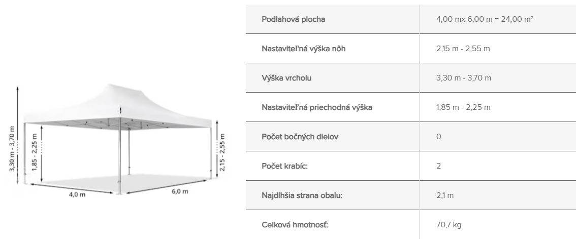 2 silnejšie stredové napínacie stĺpiky vytvára pevný stred strechy a vďaka pevnej konštrukcii s nožnicovým mechanizmom je možné stan rýchlo rozložiť a zložiť.