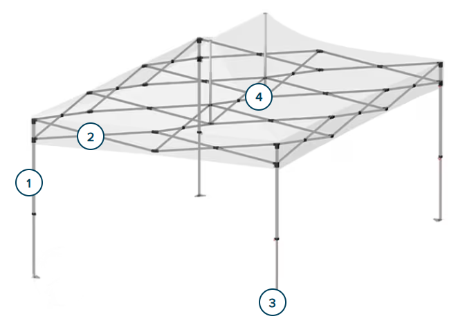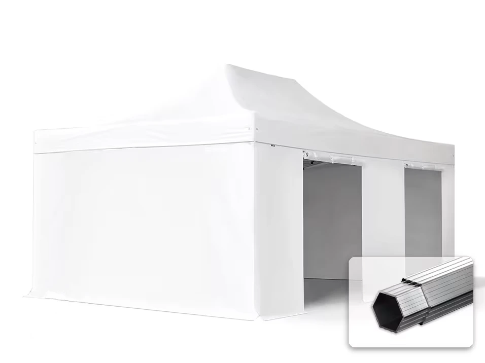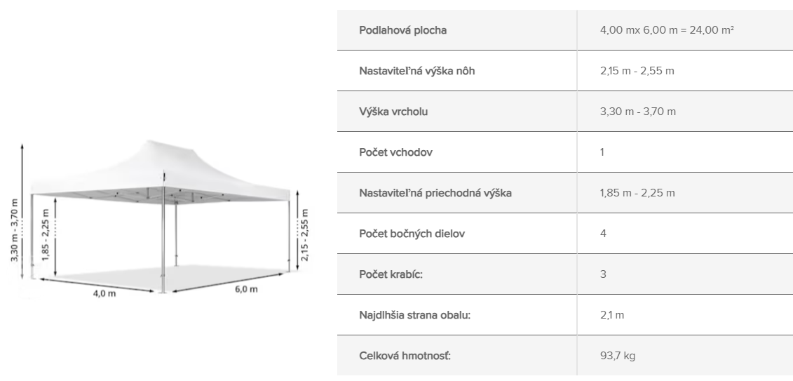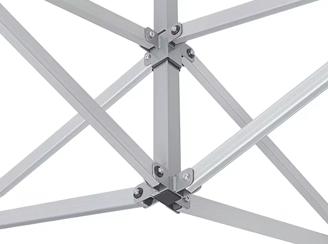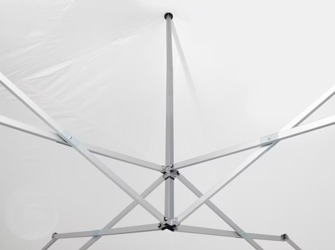 2 silnejšie stredové napínacie stĺpiky vytvára pevný stred strechy a vďaka pevnej konštrukcii s nožnicovým mechanizmom je možné stan rýchlo rozložiť a zložiť.