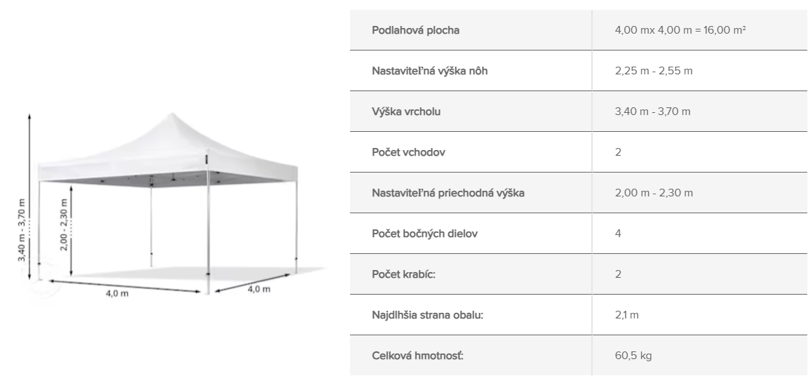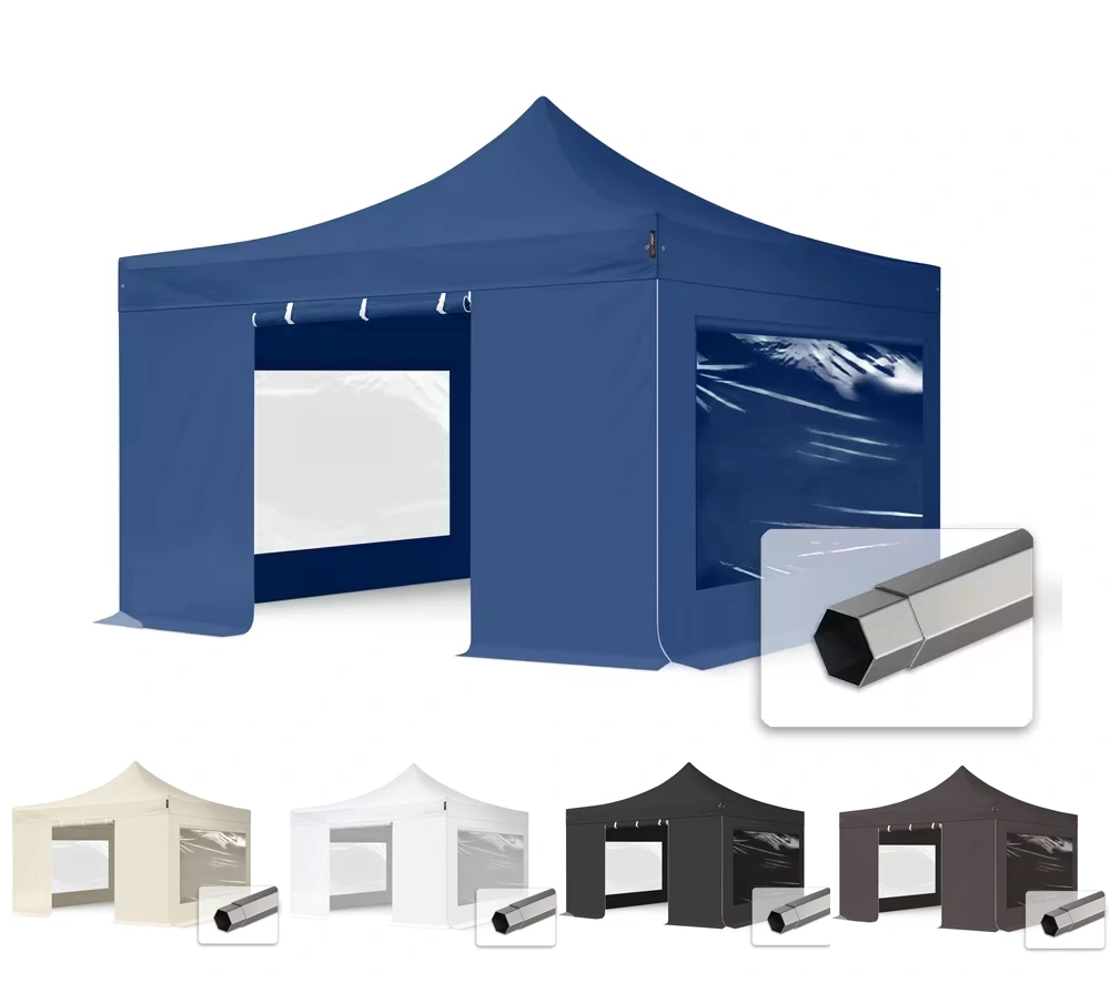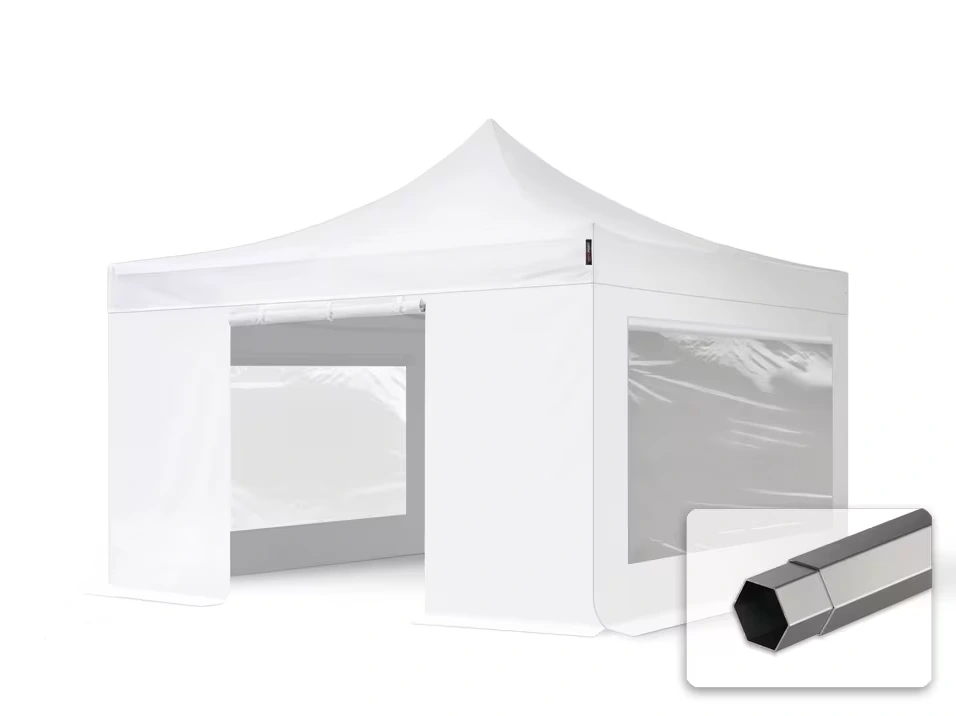 Rozkladací nožnicový stan 4x4 metre s oceľovým rámom zo 6 hranného profilu so 4 stenami